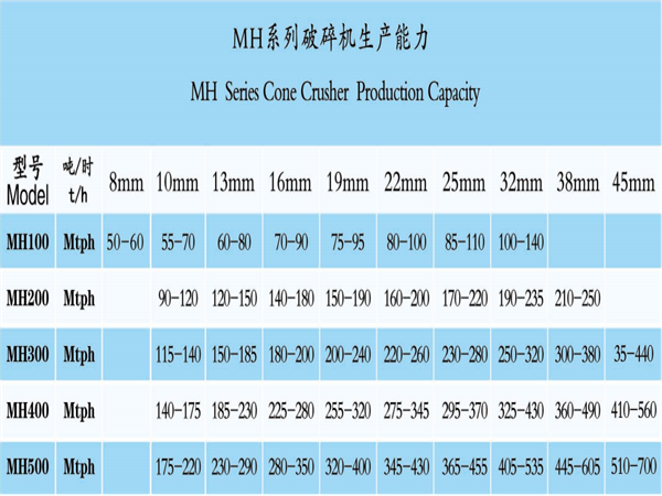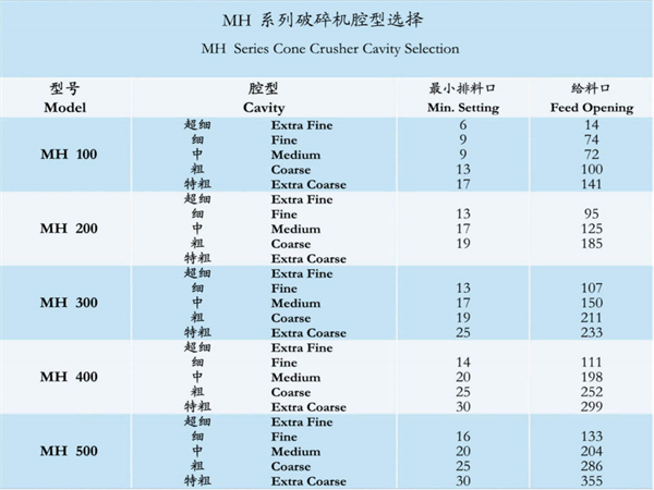 用范圍,同時(shí)保證了產(chǎn)品的可靠質(zhì)量。從石灰?guī)r到鐵燧石,從金屬礦石破碎到機(jī)制砂,MH系列圓錐破碎機(jī)可提供超細(xì)碎,細(xì)碎,中碎等不同作業(yè)上的高破碎比。